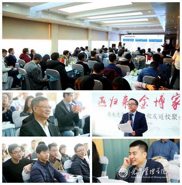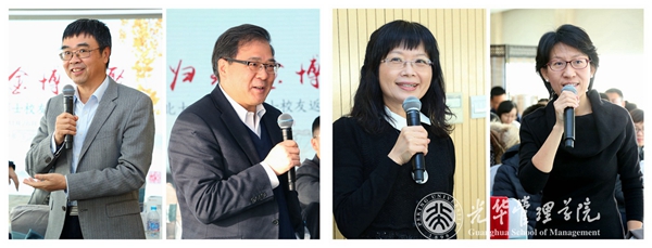 院长刘俏,金融学系教授刘力、徐信忠、刘玉珍、刘晓蕾、李怡宗、姜万军、杨云红、陈佳、卢瑞昌、张宇,校友事务部主任程艳艳及60余位校友、在校博士生参加。活动由金融学系教授张峥主持。
