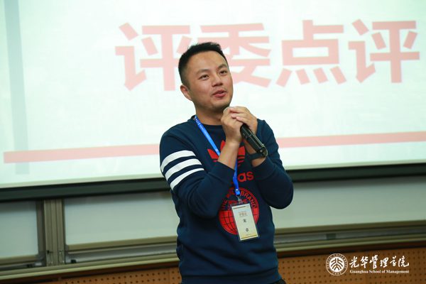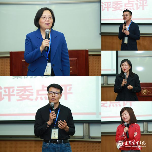 企业管理组则由五位到场嘉宾依次进行点评,王铁民教授首先肯定了大家在决赛中的优秀表现,在信息有限的情况下对案例进行了独到的阐释和发挥,并提出了自己的想法和建议;庞一博士则结合企业管理组的分析成果,介绍了四达时代的发展历程和公司在非洲市场的国际化思路;陈姝校友对选手们的表现给予了肯定,并再次强调了一带一路对企业国际化的重要性;唐宇轩校友讲述了自己与小米公司结缘的故事,也分享了自己作为小米公司的一员对小米未来发展的思考;刘勇军校友则分享了近年来小米上市及架构变革的基本情况,并结合选手们的展示内容进行了针对性的点评。