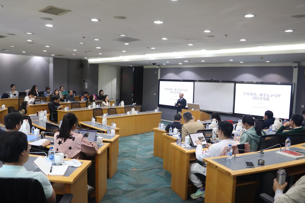 随后,周黎安教授围绕“官员激励、地方竞争与中国经济发展”展开主题演讲。中国地方政府和地方竞争为支撑过去四十年的改革开放和经济增长奇迹提供了关键性的制度基础,构成中国经济发展模式中最鲜明的特色之一。围绕这个大的背景,基于对中国特色财政联邦主义等经典理论的回顾与反思,周黎安教授强调引入“官员晋升激励”的重要性,以此聚焦于改革开放以来各级地方政府与地方官员围绕地区GDP增长、财政收入及相关经济指标开展的“官员晋升锦标赛”,为分析地方政府、地方竞争以及中国特色的经济增长进程提供了强有力的分析框架,实现了研究视角与方法论的突破。