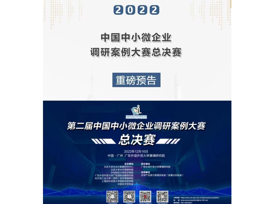 时间:2022-12-1612月16日,第二届中国中小微企业调研案例大赛总决赛通过线上直播方式在广州成功举办。本届大赛由北京大学、中央财经大学、哈尔滨工业大学(深圳)、广东外语外贸大学、上海对外经贸大学等中国企业创新创业调查(E...