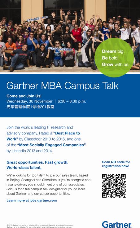 Scan below QR code for registration, and begin your journey to find out why Gartner is rated a “best place to work” by Glassdoor 2013-2015, LinkedIn and many more.