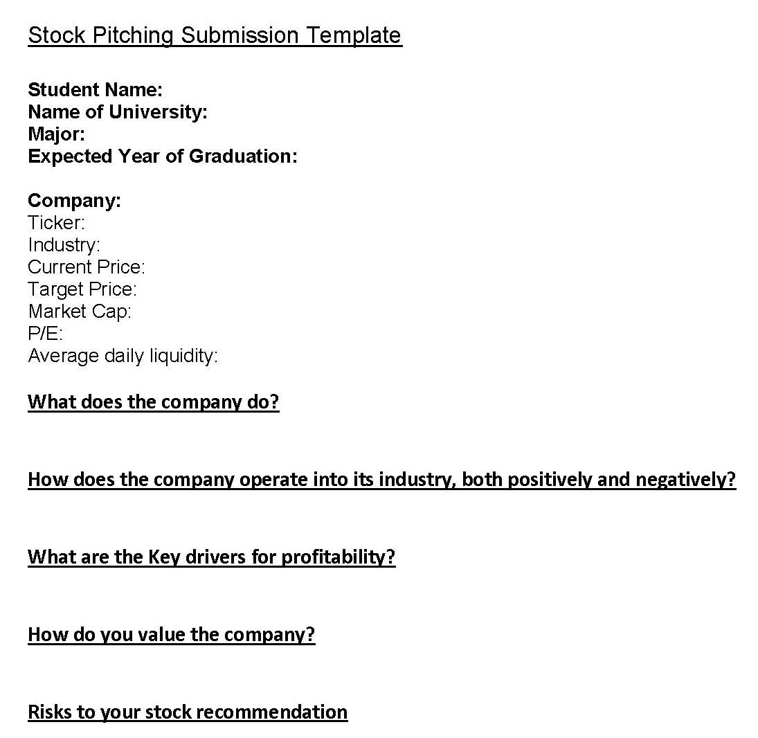 · Please make sure your stock pitch is a maximum of 1000 words (.doc), and follows the template below.