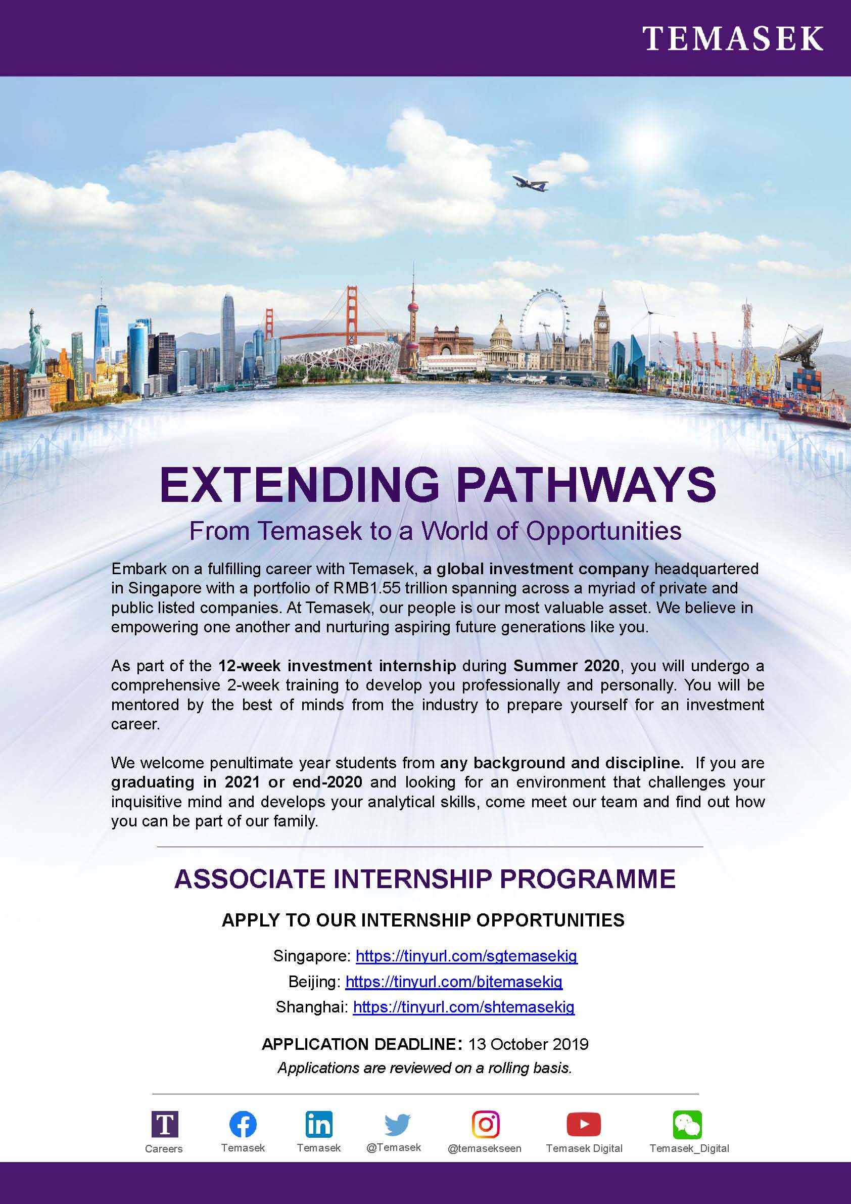 APPLICATION DEADLINE: 13 October 2019