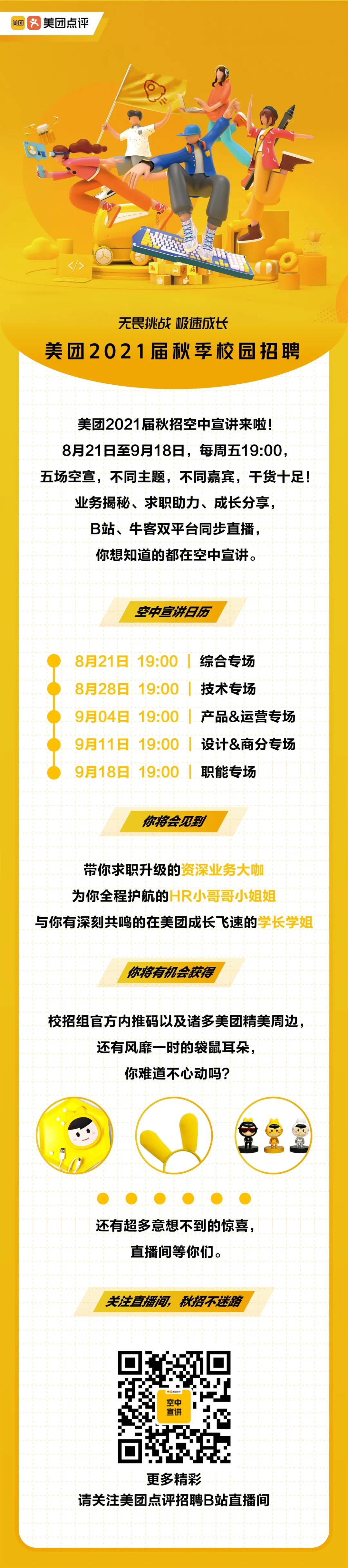 美团2021届秋招空中宣讲即将开播,精彩不容错过!