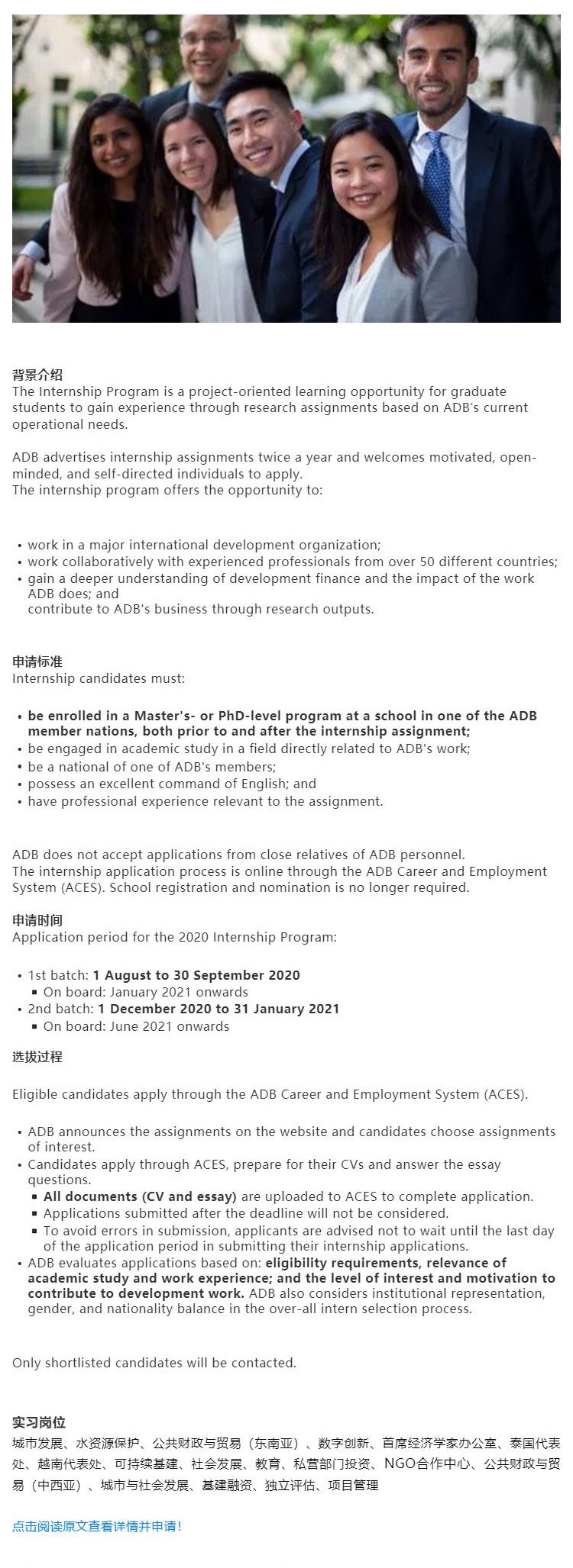 详情链接://www.adb.org/work-with-us/careers/internship-program