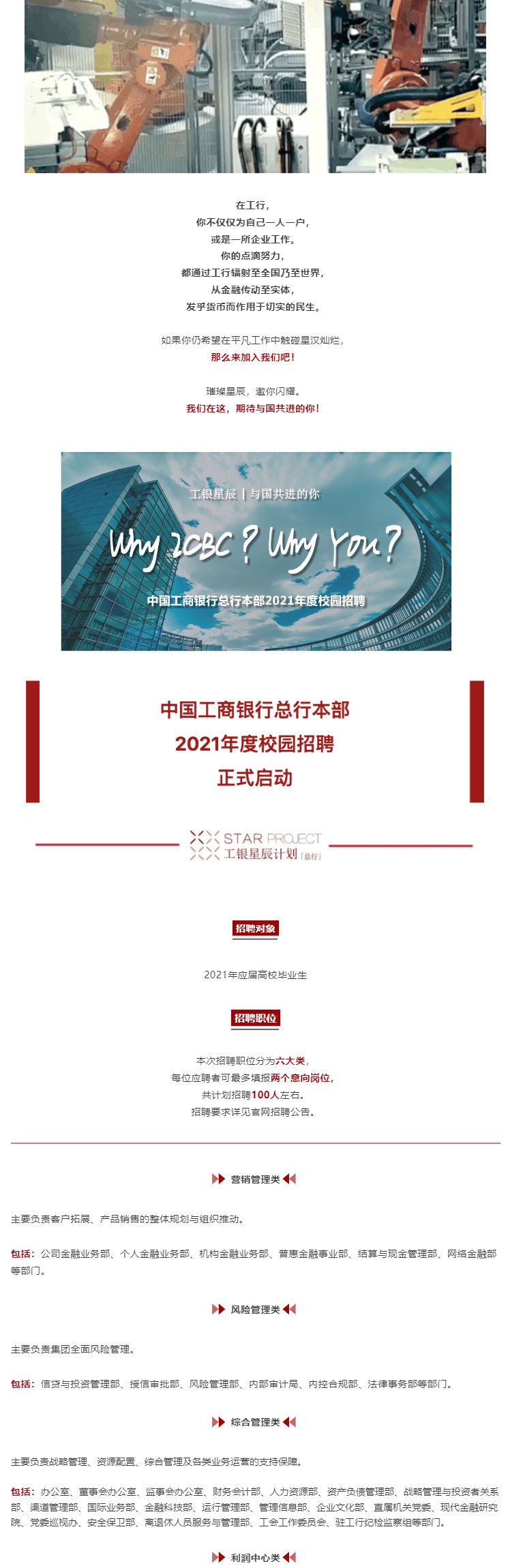与国共进的你 | 工行总行本部2021年度校园招聘正式启动