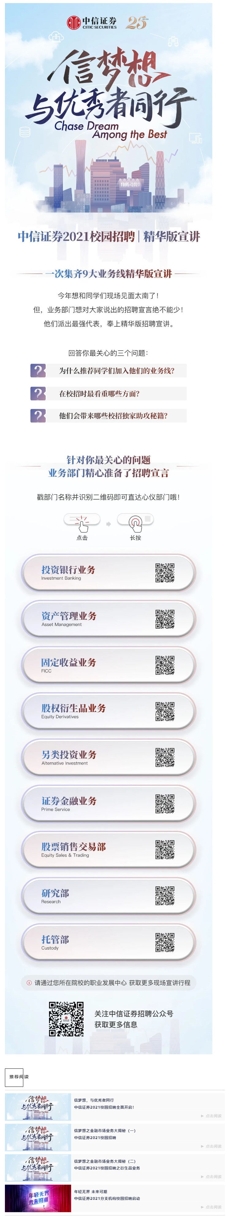 九大业务线一次集齐:中信证券2021校园招聘宣讲精华版来了!