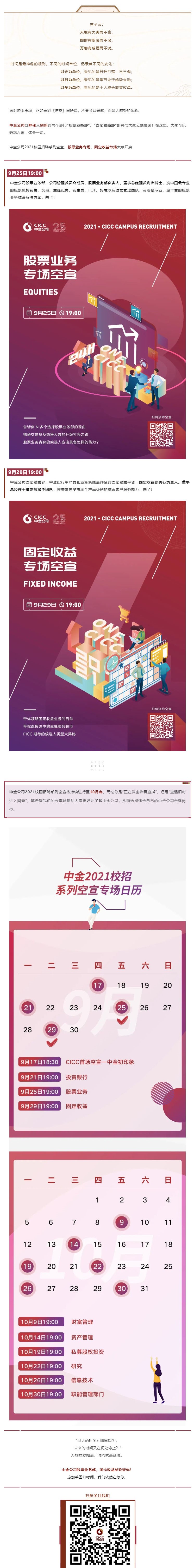 中金公司2021校园招聘系列空宣之股票业务、固定收益 | 9月25日19:00、9月29日19:00