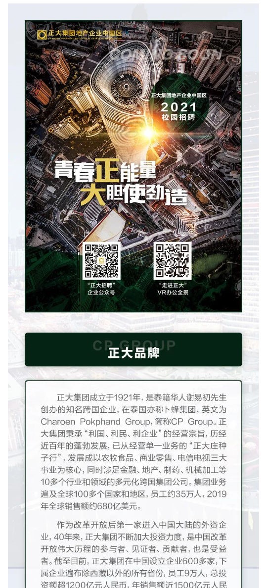 正大集团地产企业中国区2021校园招聘正式启动啦!