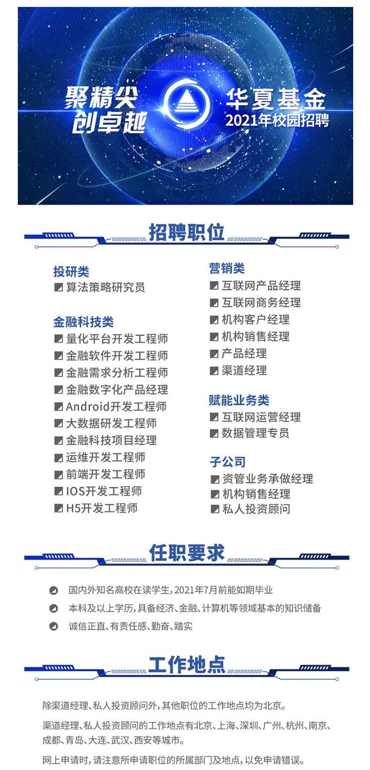 『聚精尖 创卓越』华夏基金2021年校园招聘全面开启