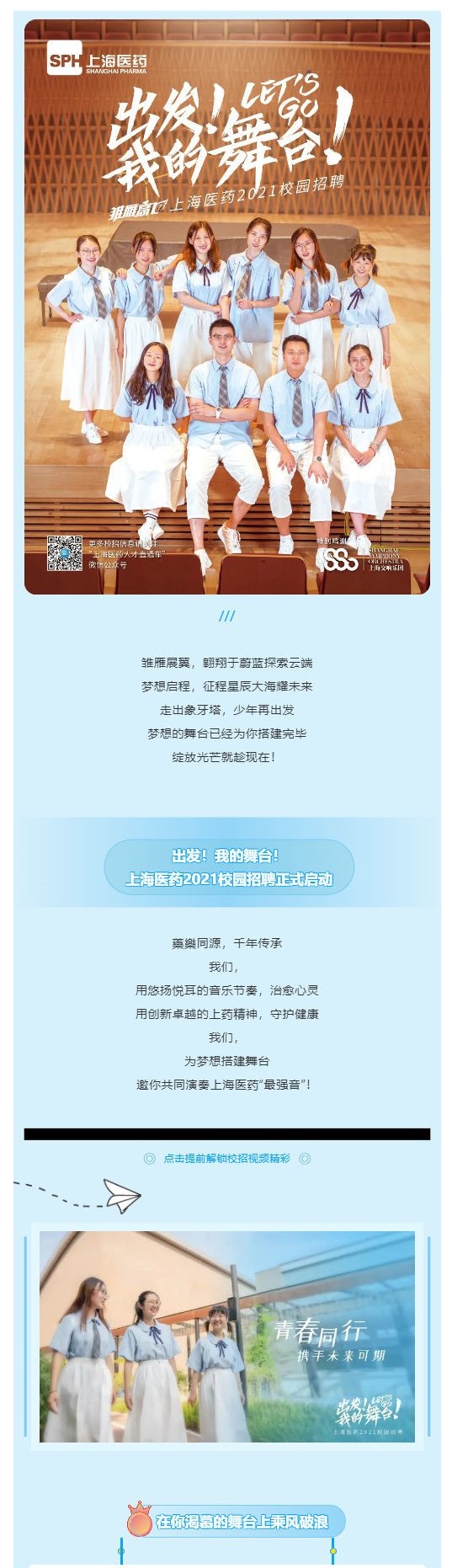 出发!我的舞台!上海医药2021校园招聘正式启动
