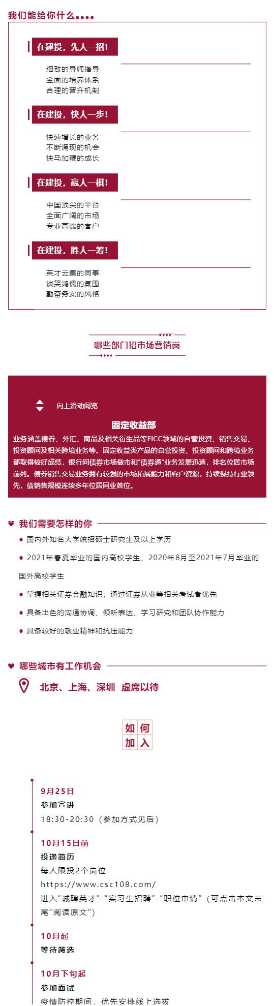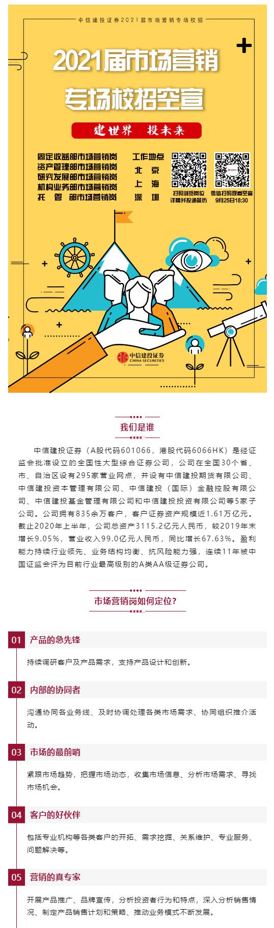 建世界 投未来:中信建投证券2021届市场营销专场校园招聘启动|9月25日18:30空宣来袭