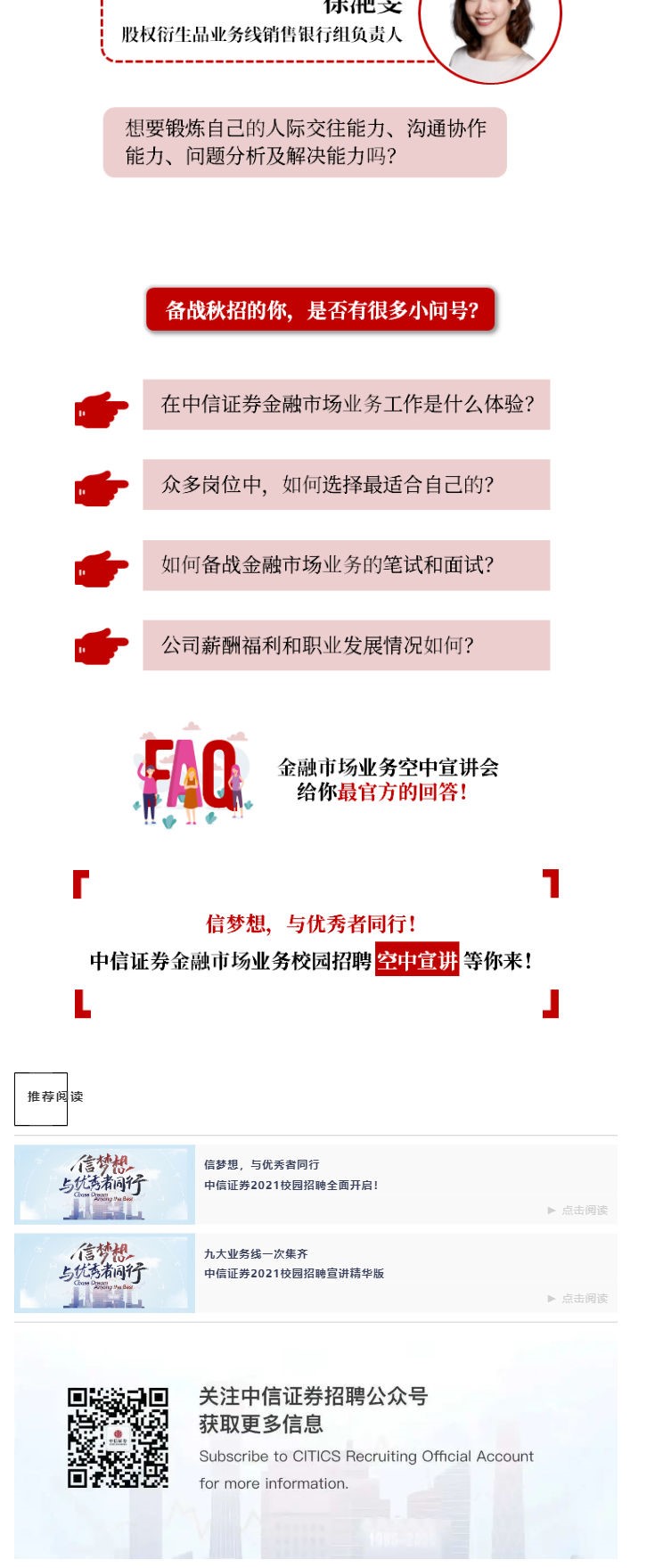 中信证券2021校园招聘金融市场业务空中宣讲会 | 10月12日19:00