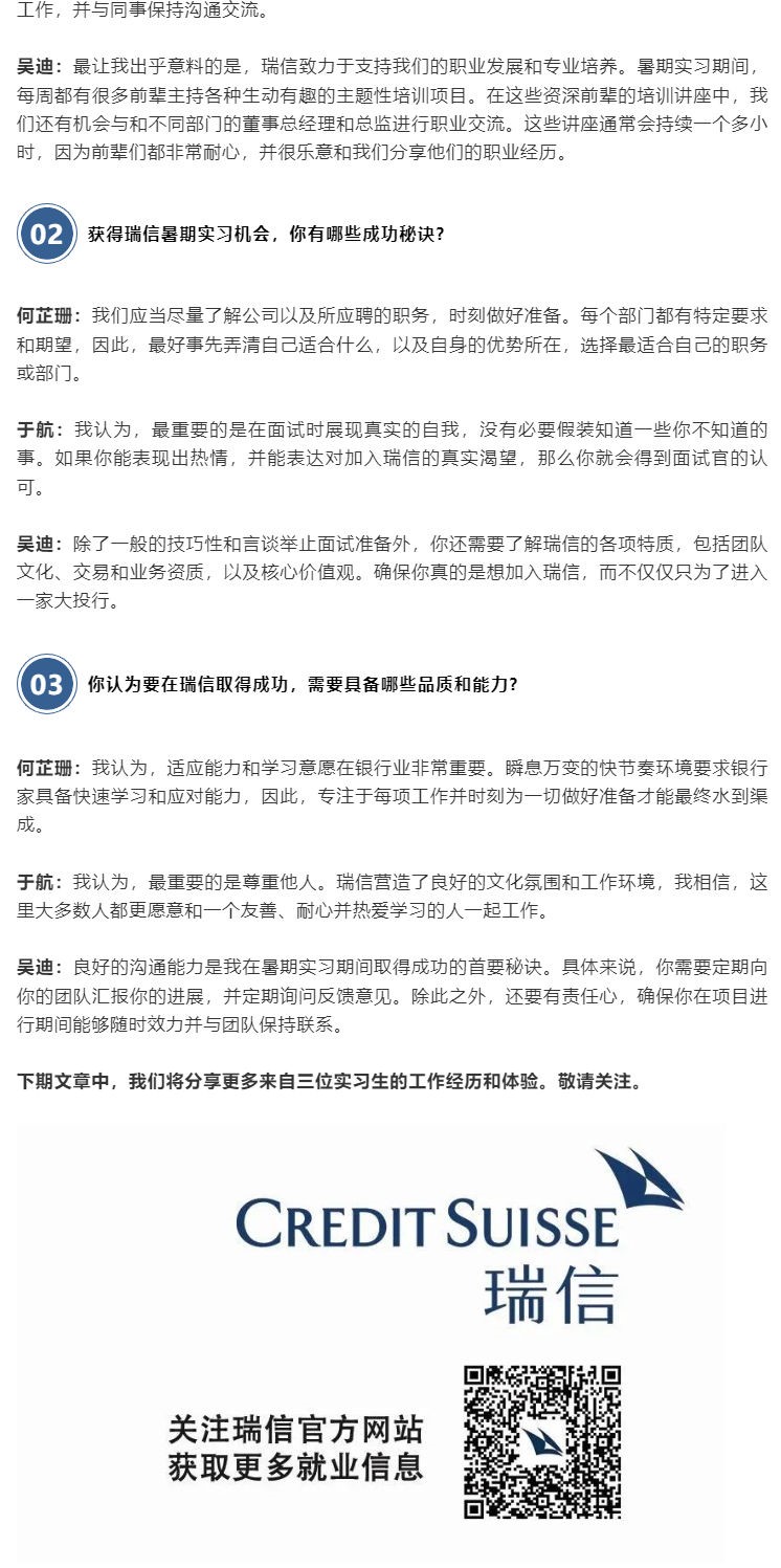 在瑞信亚太区投资银行和资本市场部实习,是怎么的体验?