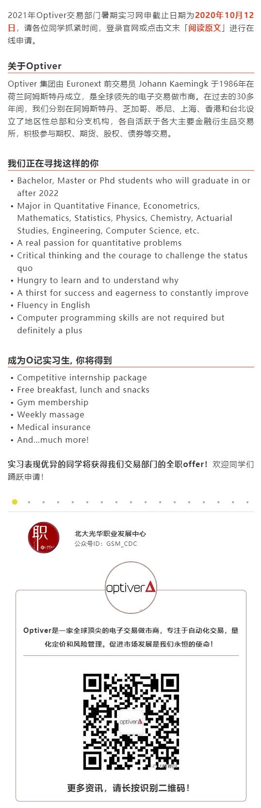 提醒 | Optiver 2021年交易部门暑期实习网申即将截止