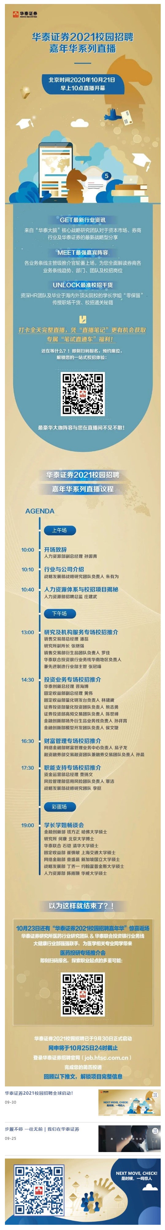 即刻报名!华泰证券2021校园招聘嘉年华系列直播10月21日与您相约云端!