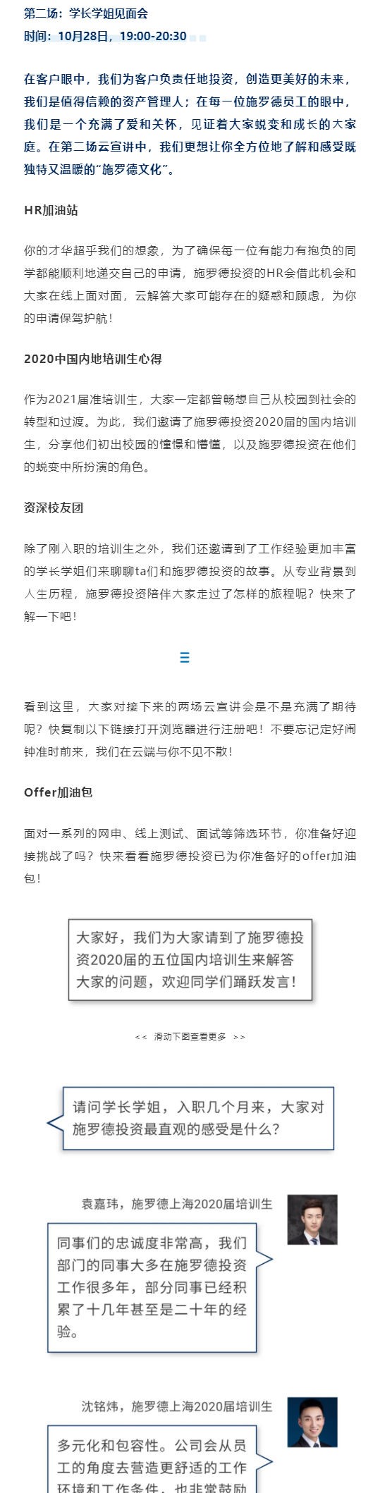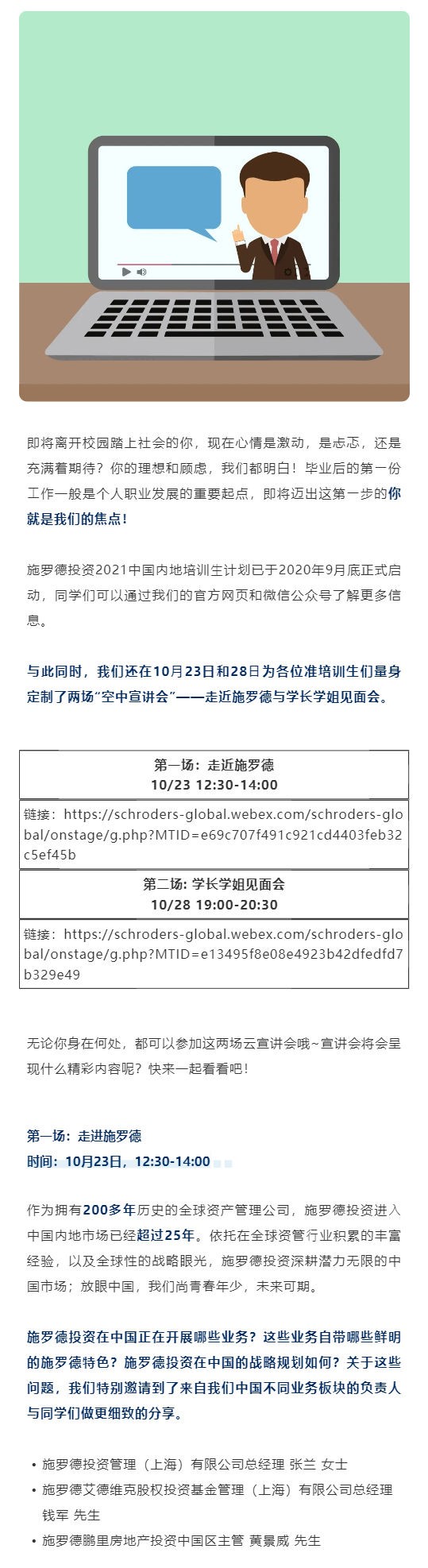 施罗德投资2021中国内地培训生计划空中宣讲会来袭!我们在云端等待优秀的你