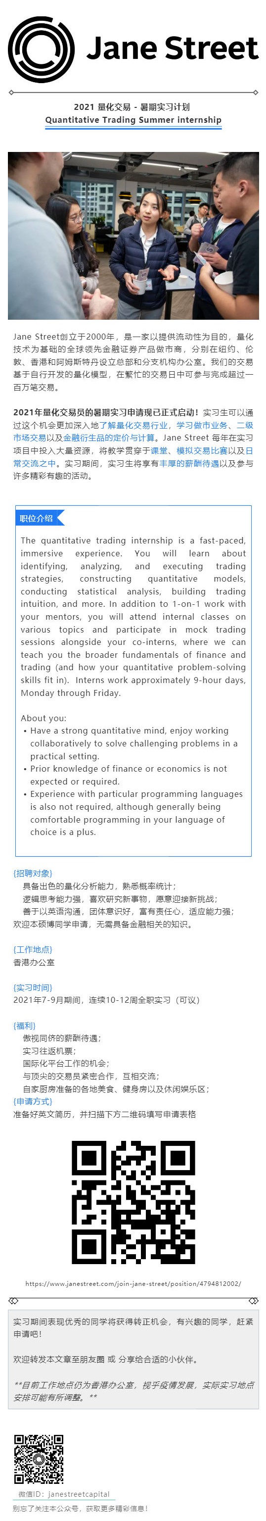 量化交易 - 暑期实习计划正式启动 Quantitative Trading Summer internship