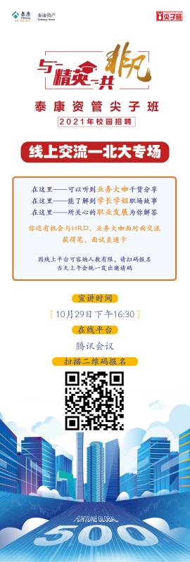 泰康资产北京大学线上专场宣讲会来啦~快来预约报名