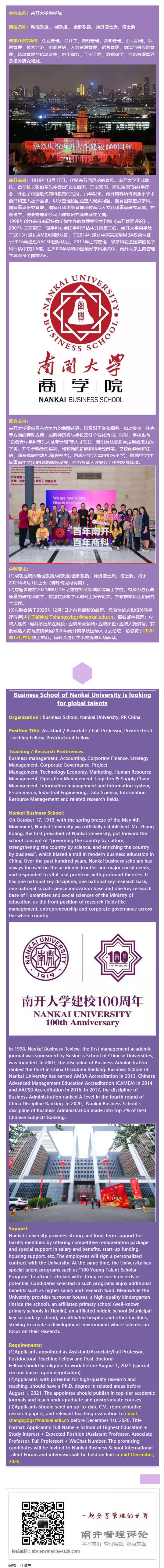 人才招聘:新百年 新商科——南开大学商学院诚聘全球英才