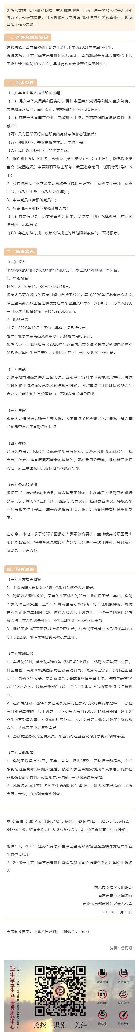 2020年江苏省南京市秦淮区暨南部新城国企选聘优秀应届毕业生公告