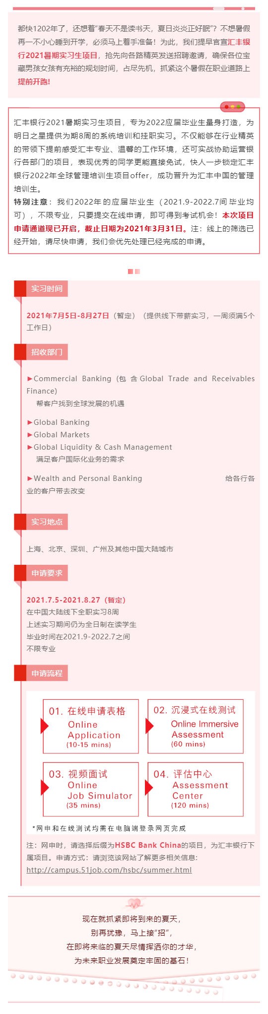 接 “招” !汇丰银行2021暑期实习生项目向你发起邀请!