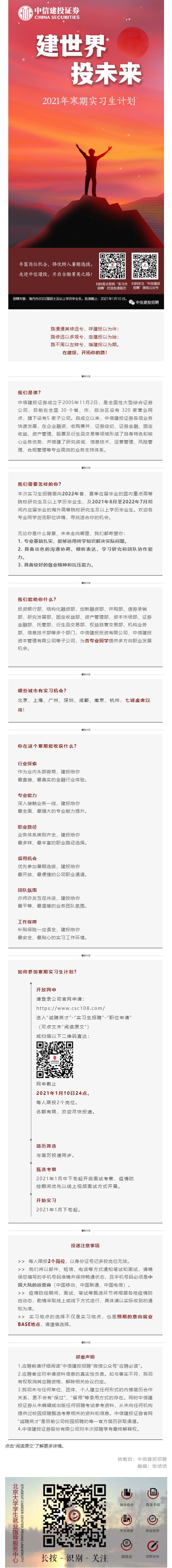 建世界 投未来——中信建投2022届寒期实习计划启动