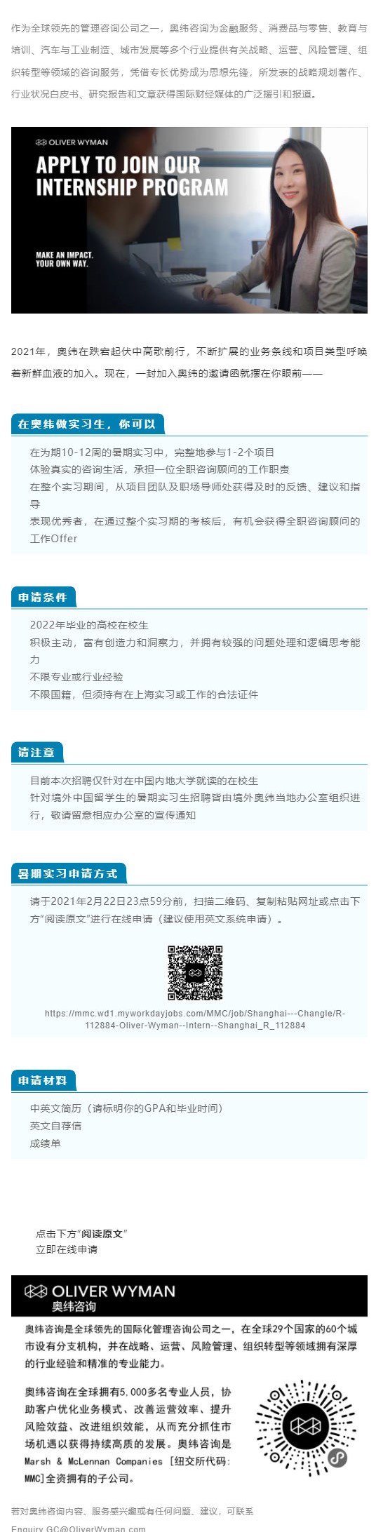 2021年奥纬咨询中国内地暑期实习招聘正式启动