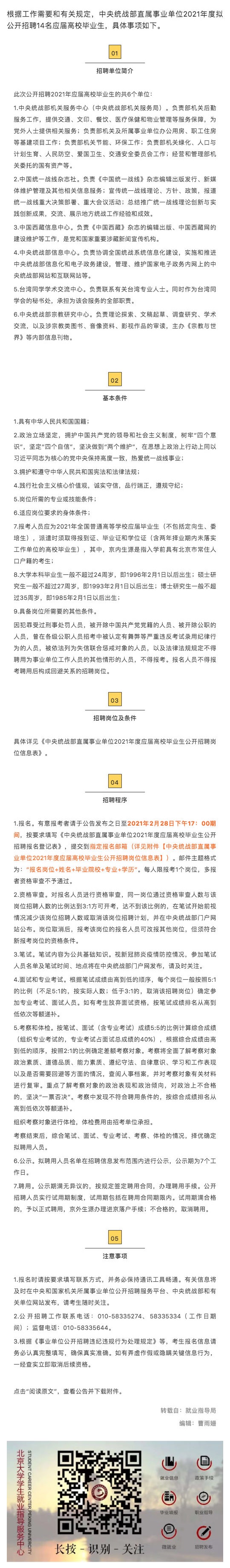 【事业单位】中央统战部直属事业单位2021年度公开招聘应届高校毕业生