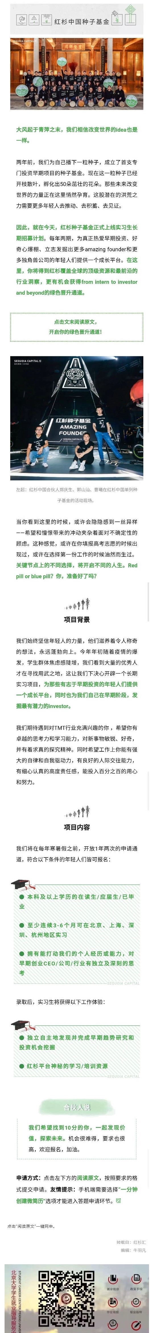 From Intern to Investor and Beyond:红杉种子基金实习生招募计划