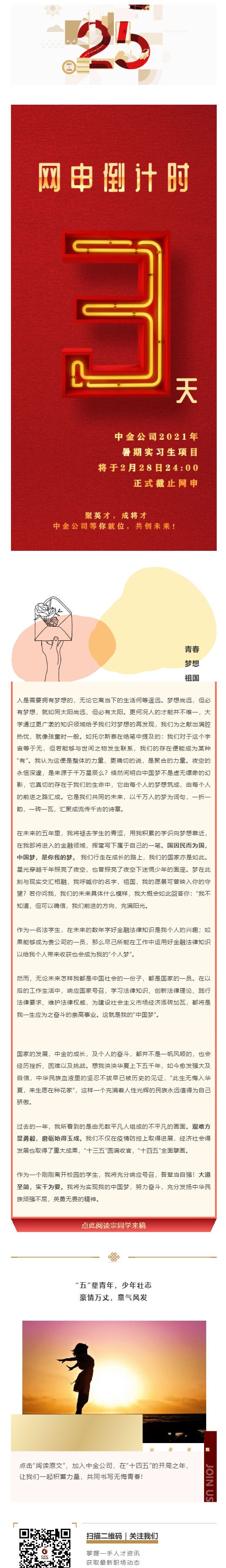 中金公司2021暑期实习生项目网申截止倒计时2天