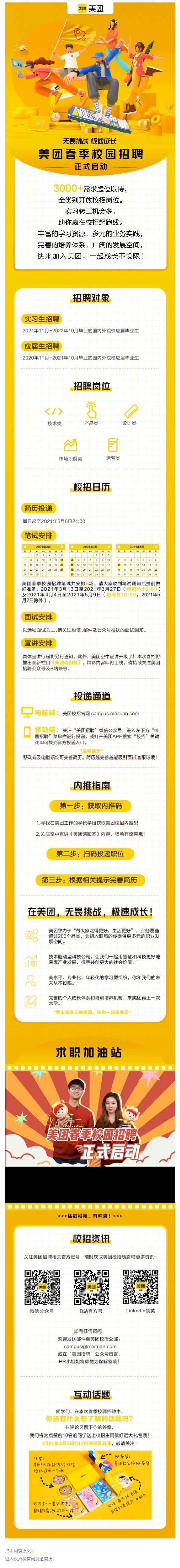 美团2022届实习生招聘与2021届应届生补招同步开启