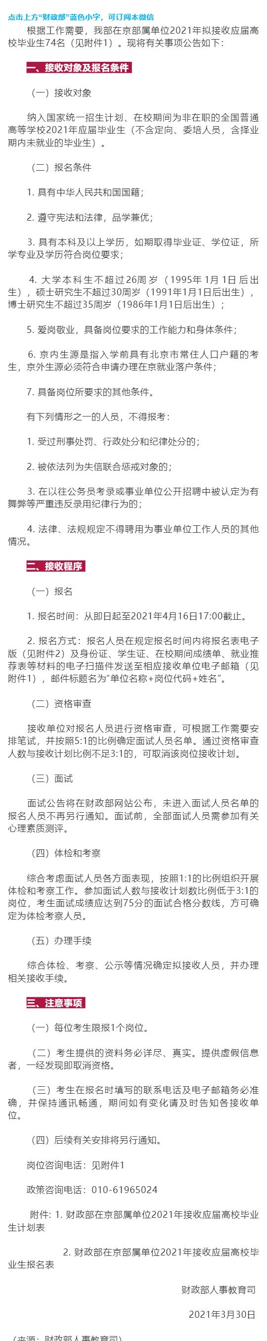 财政部在京部属单位2021年接收应届高校毕业生公告
