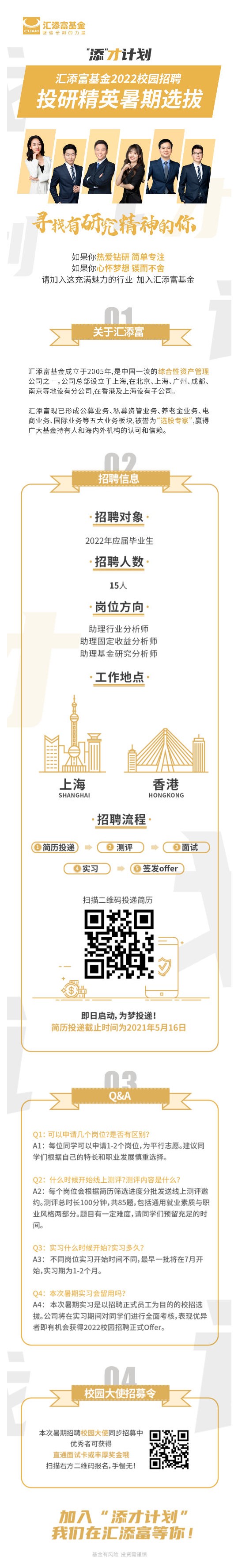 汇添富基金2022校园招聘-投研精英暑期选拔