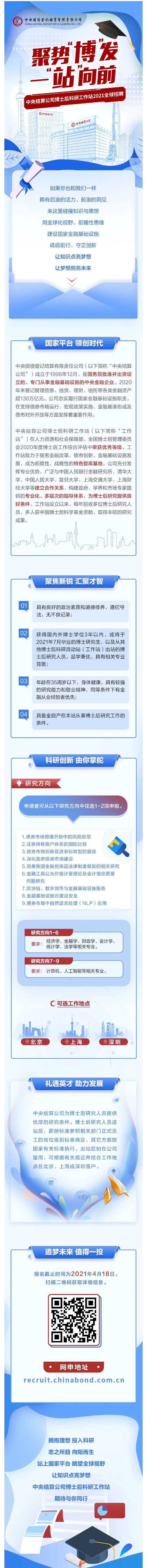 中央结算公司2021博士后招聘|网申截止仅剩5天