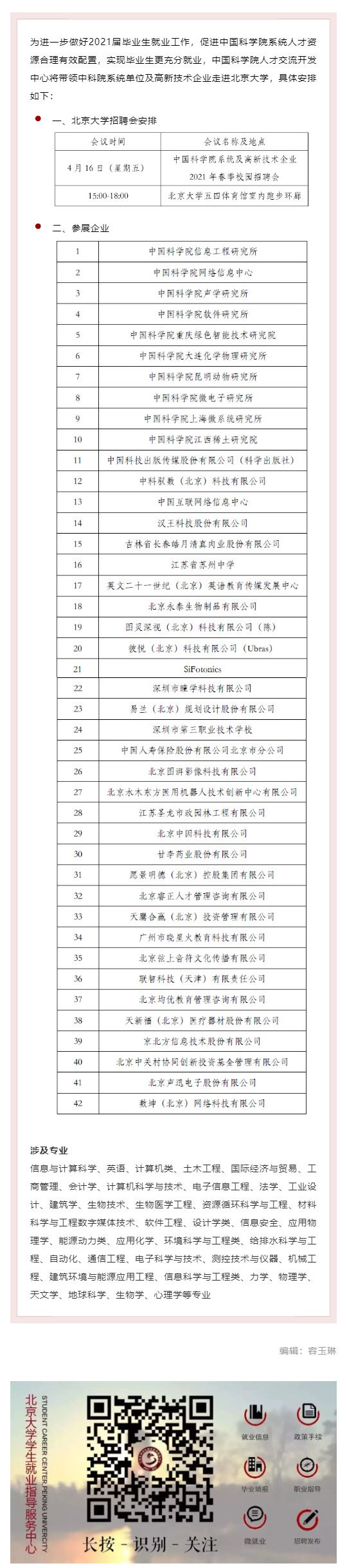 中国科学院系统及高新技术企业2021年春季校园招聘会