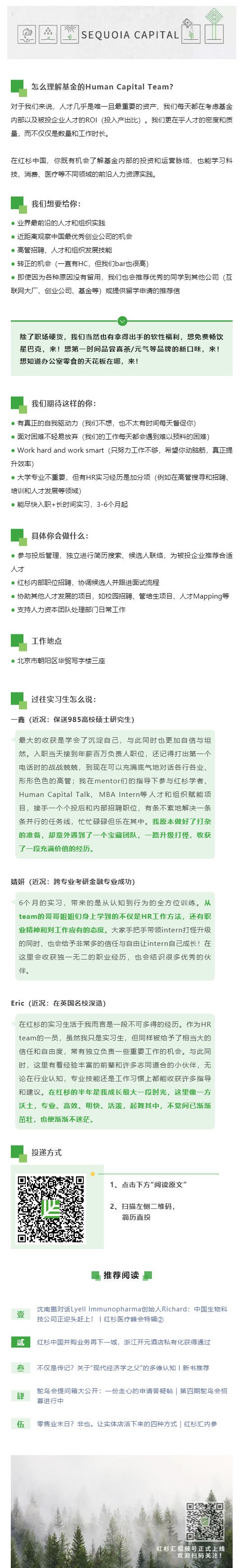 红杉中国【人力资本分析师(实习)岗位】招聘来啦!