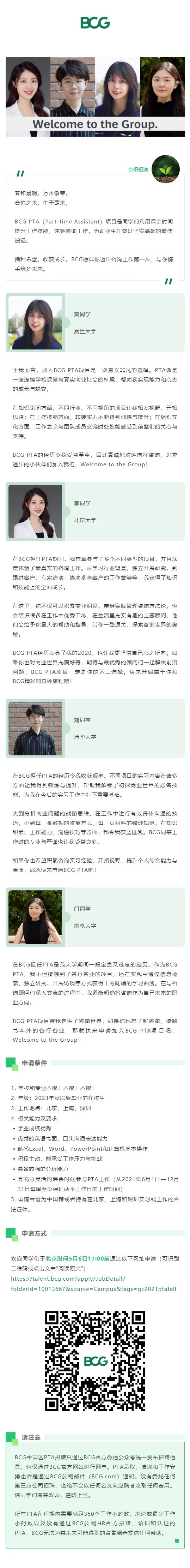 BCG夏秋季PTA招聘|PTA请就位