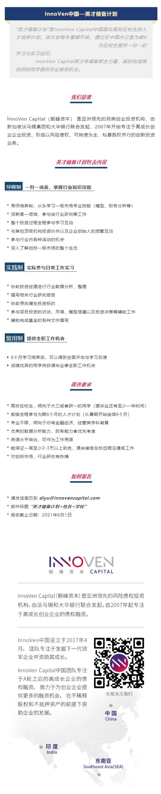 欢迎加入InnoVen中国“英才储备计划”