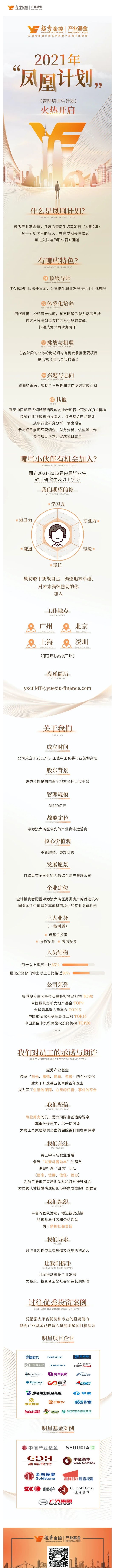 越秀产业基金2021年“凤凰计划”(管理培训生计划)火热开启