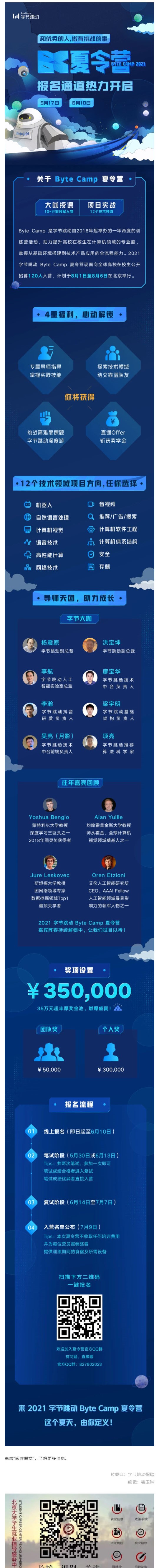 字节跳动 Byte Camp 夏令营报名启动!12个技术领域等你来战!