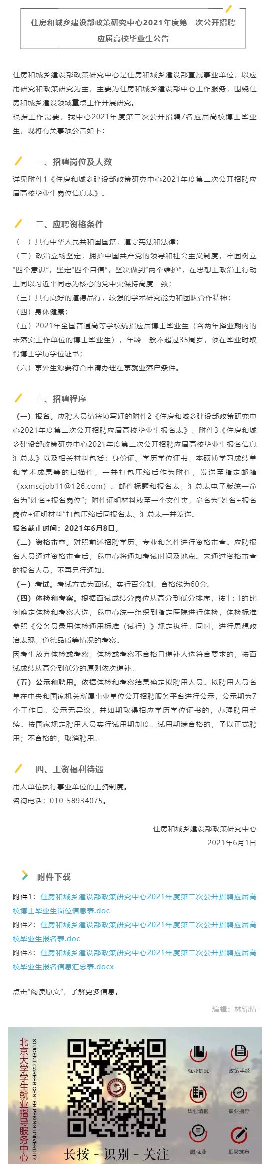 住房和城乡建设部政策研究中心2021年度第二次公开招聘应届高校毕业生公告