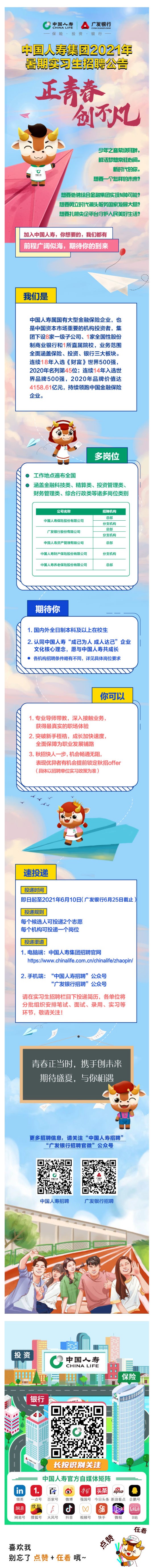中国人寿暑期实习生招聘开始啦!