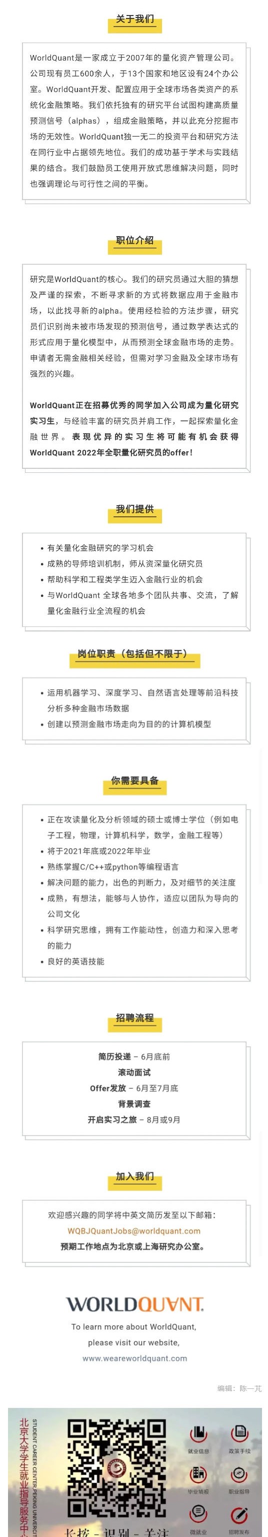 WorldQuant 2021量化金融暑期实习,虚席以待!