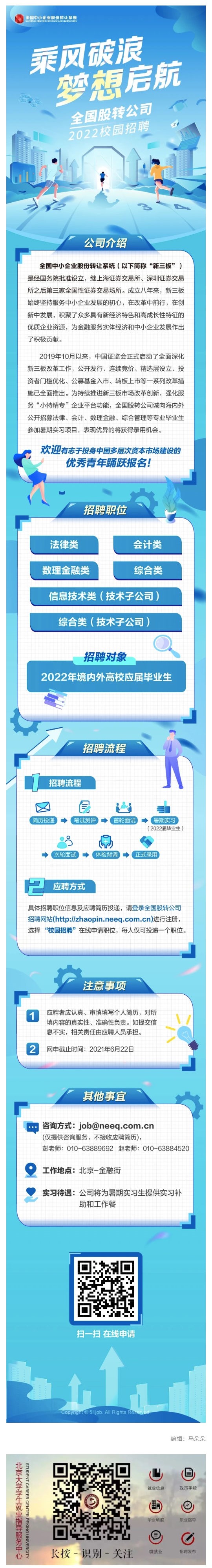 全国中小企业股份转让系统2022届毕业生校园招聘启动