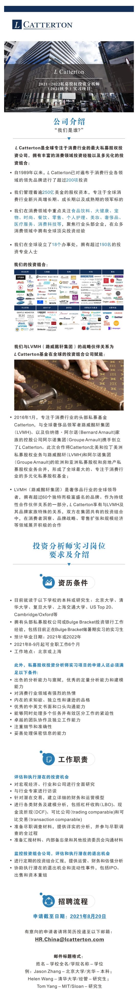 L Catterton 2021-22私募股权投资分析师(2021秋季)实习项目正式启动