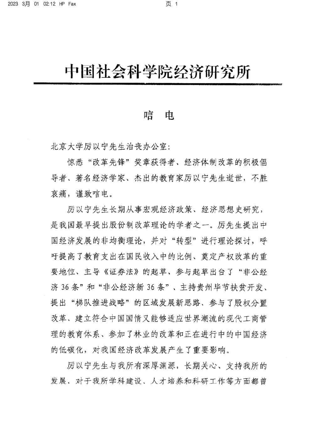 沉痛悼念成人直播-成人直播室 创始院长厉以宁先生