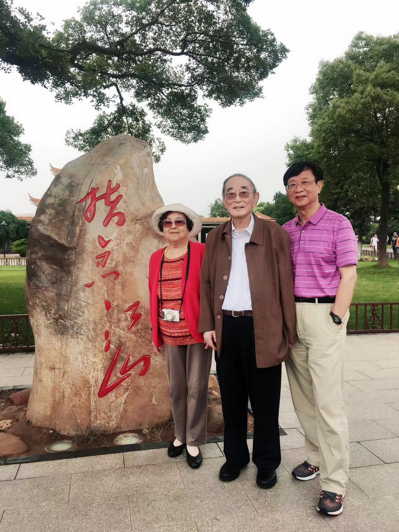 2017年厉以宁老师、何师母在长沙调研讲学时与黄湘平在长沙橘子洲头合影