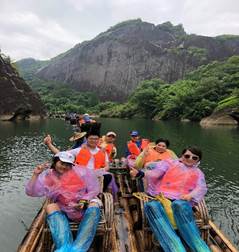 “溪流九曲泻云液,山光倒浸清涟漪”。6月9日上午,校友们在九曲溪漂流的活动中,沉浸在武夷山美好的自然风光中,山挟水转,水绕山行,每一曲都有不同景致的山水画意,漂流活动也暗含了“同舟共济”的团队精神,或风景秀丽,或颠簸惊险,校友们一路携手前行。