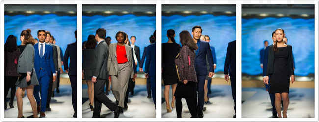 随后发布的商务套装秀,商学院的同学们换上各式商务套装,展现职场精英职业、干练、专业的经营特质,将商学院旨在培养商业领袖的精神精准传达,也让本届时装秀的成人直播特质更为突出。